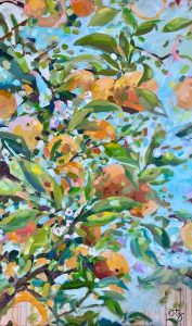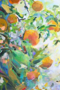 In guten Jahre wächst die Blüte mit den Früchten parallele am Orangenbaum.